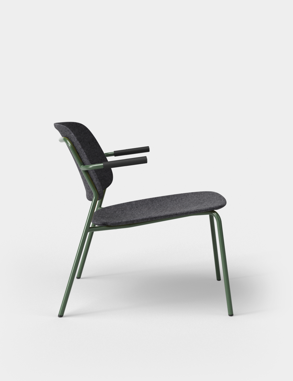 ohne Kompromisse bei seinem eleganten Aussehen einzugehen. Der aus PET-Filz gefertigte Sitz und die Rückenlehne haben