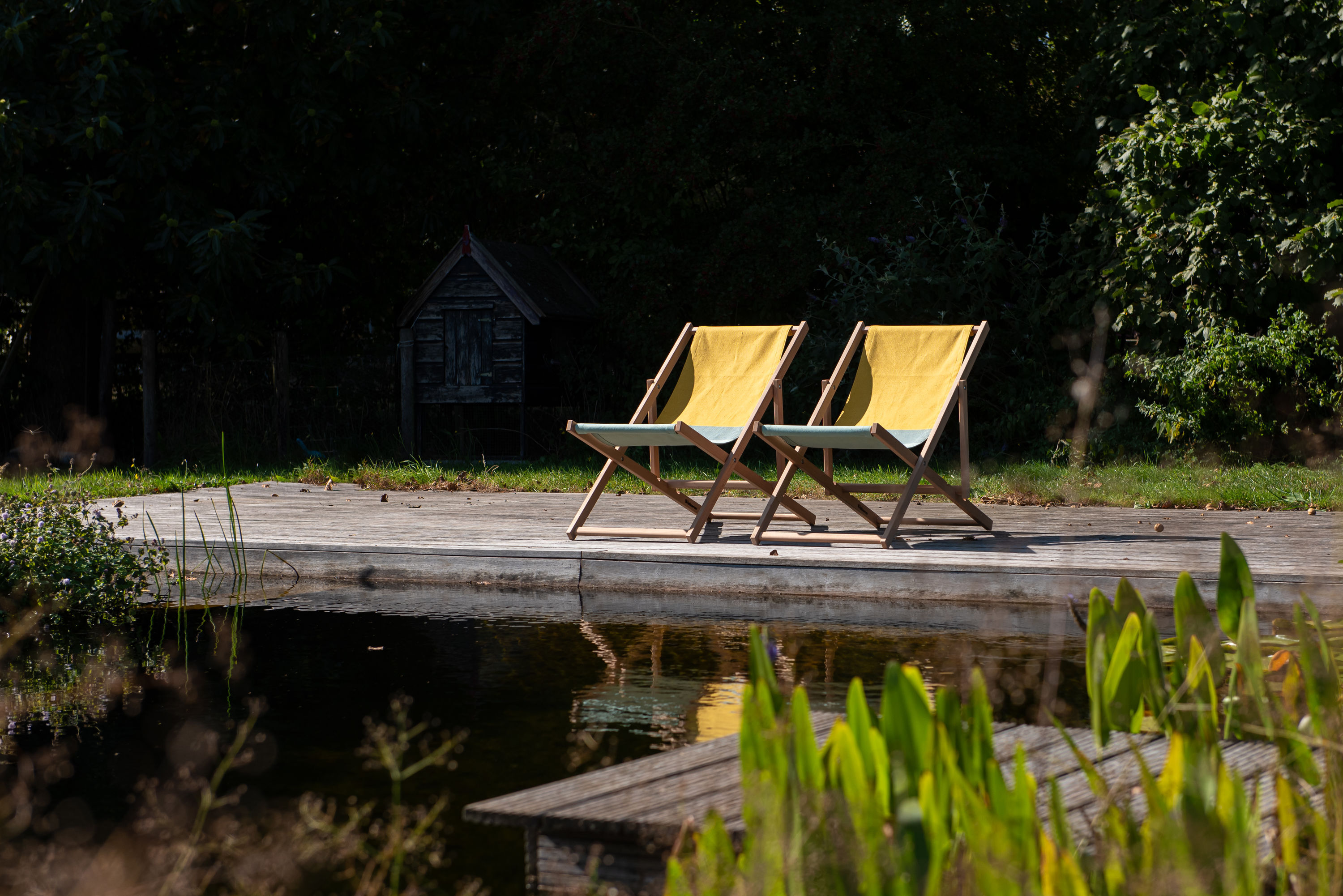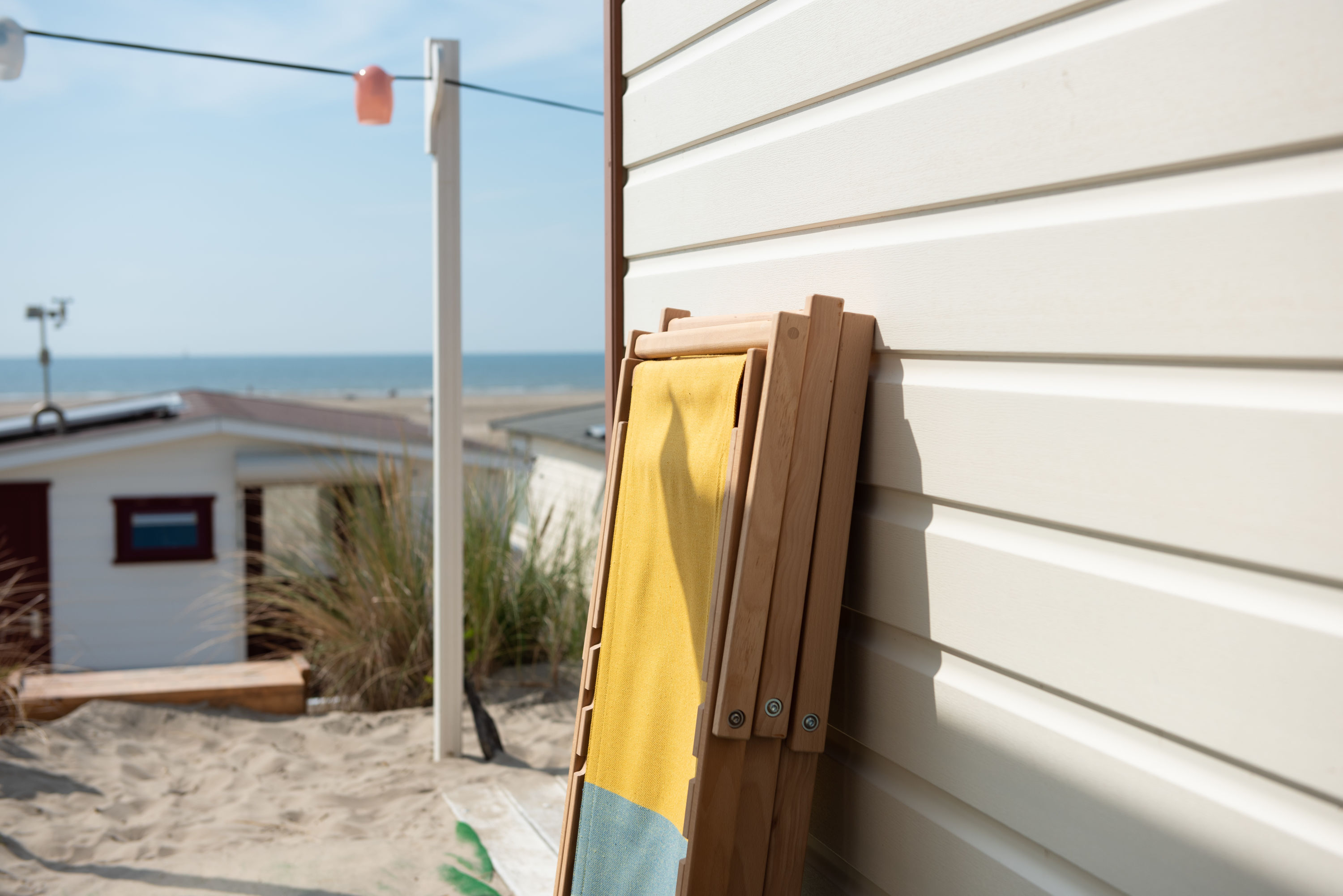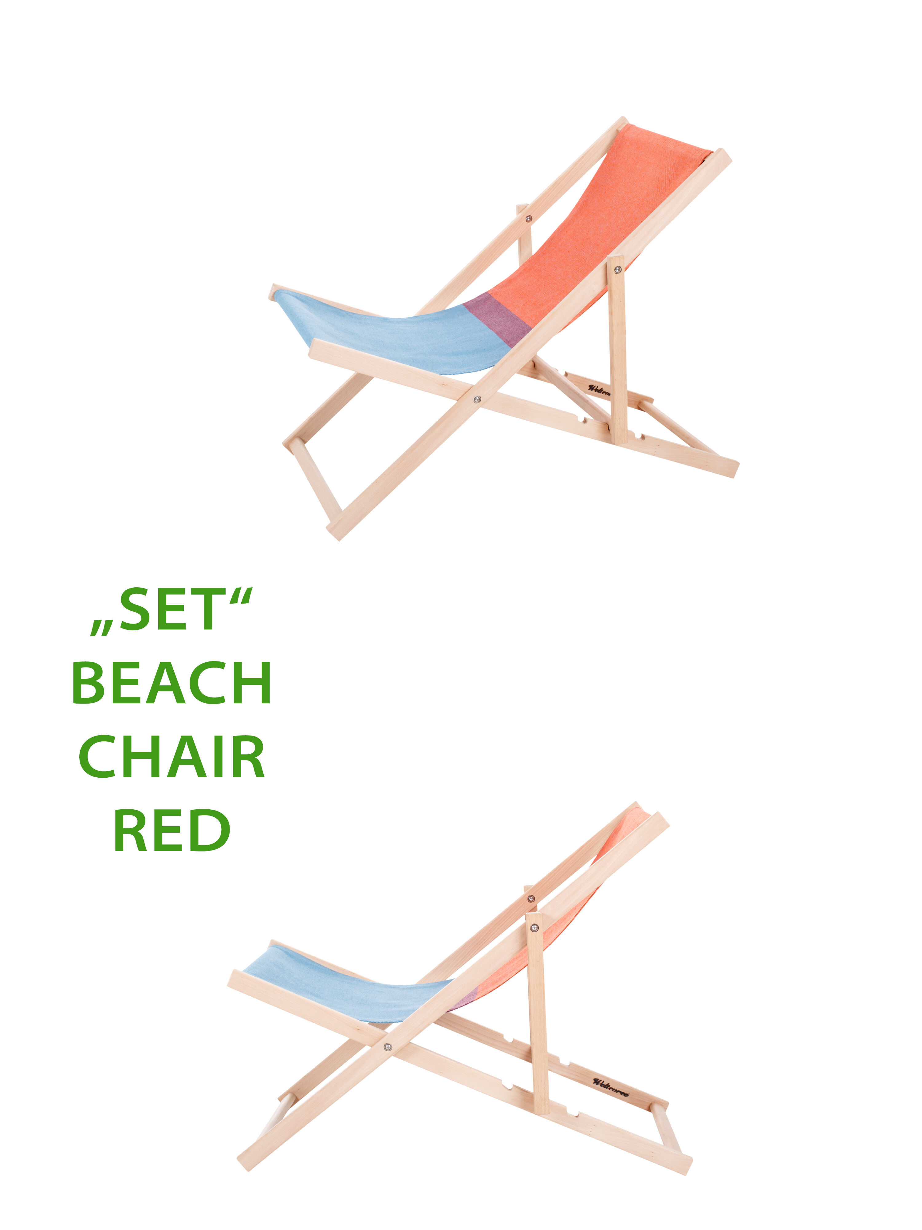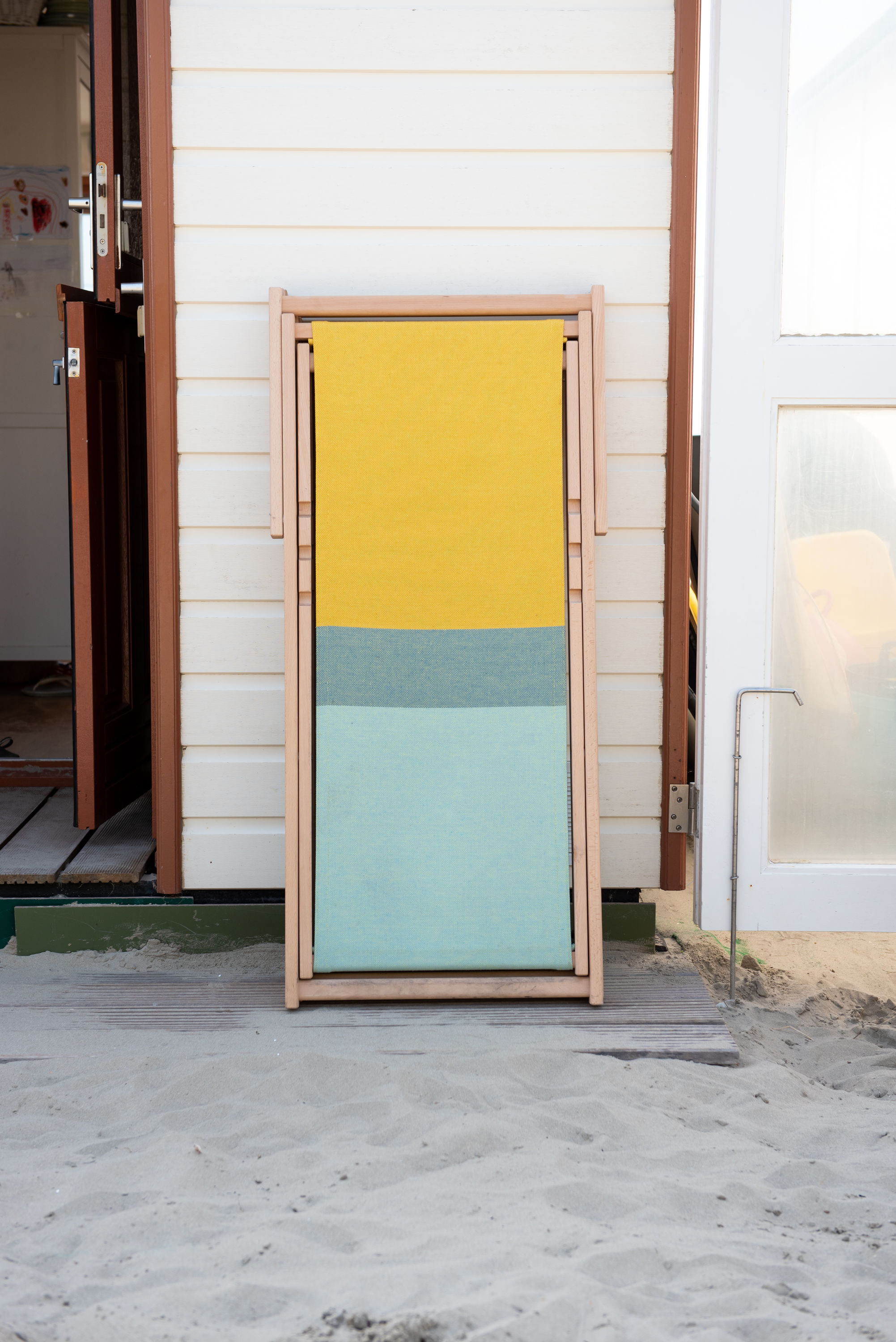 Der Beach Chair ist in zwei Farbvarianten erhältlich und wird aus Buchenholz und Bio-Baumwolle hergestellt